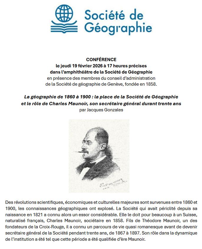 Jacques Gonzalès, notre Vice-président est, vous le savez tous, Secrétaire général de la Société de Géographie : Nous vous invitons à écouter la conférence qu’il donnera le 19 février prochain.