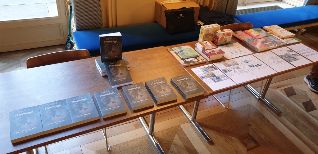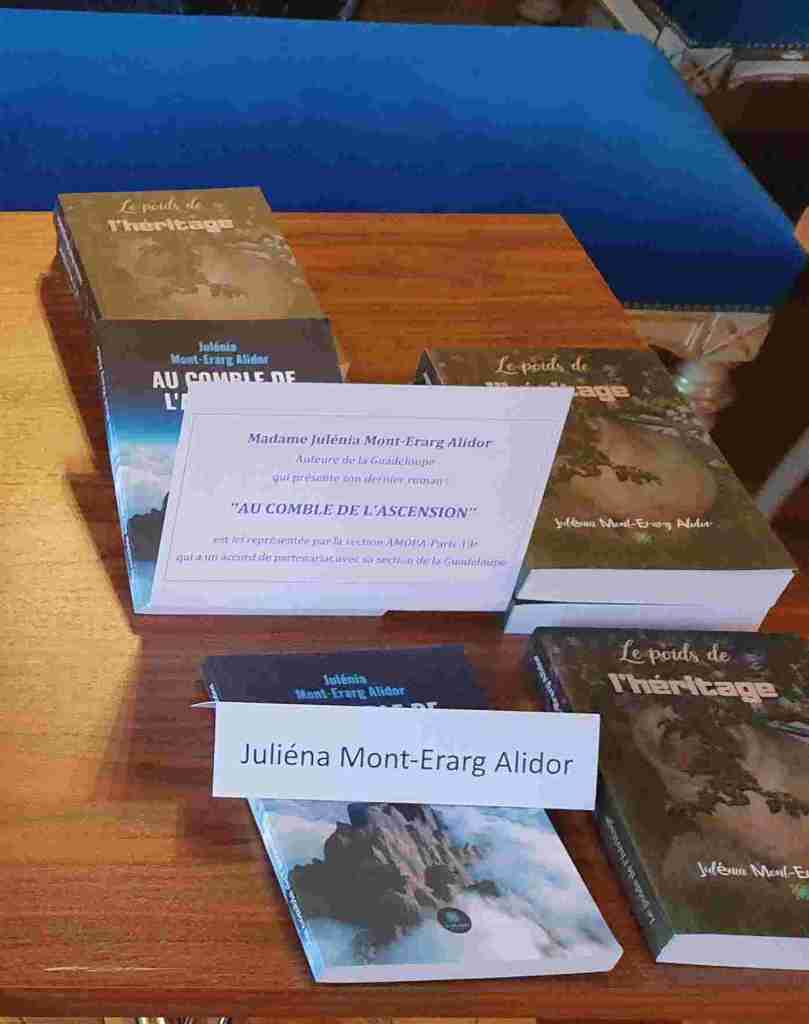 Je vous remercie tous les deux d’avoir placé votre confiance en moi et de m’avoir permis de croire en l’impossible. Merci d’avoir œuvré pour permettre à mes ouvrages d’être présents aux Salons du livre de l’AMOPA Paris 7, ce qui a eu pour but de familiariser les visiteurs au nom de l’écrivain Julénia MONT-ERARG ALIDOR et de mieux connaître l’adhérente en tant que sympathisante à l’AMOPA que j’ai été.