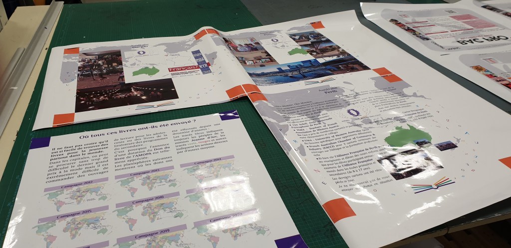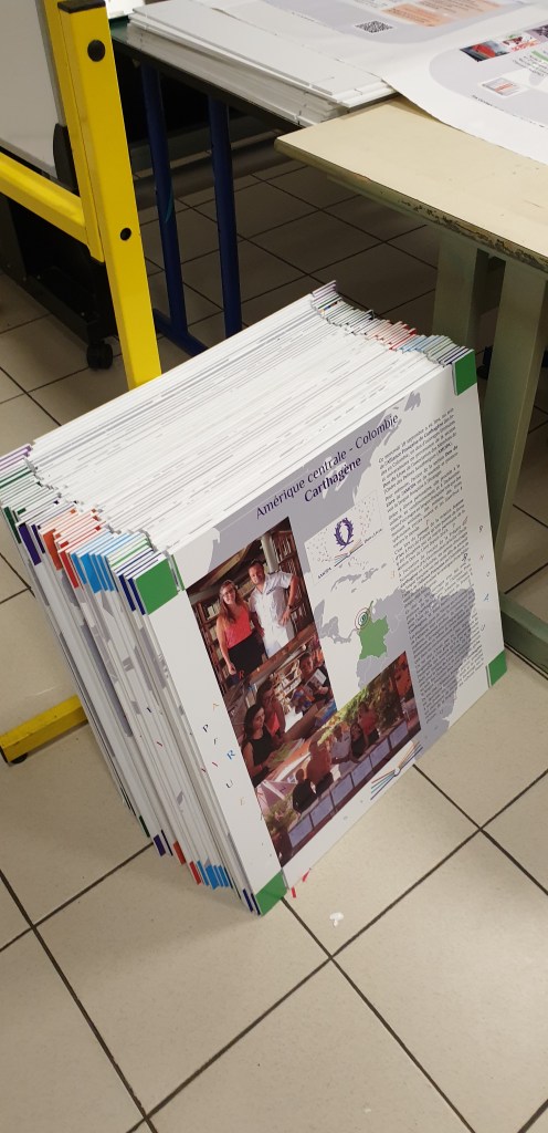 La préparation de l’exposition Le voyage du livre nous a fait rechercher quels types de supports pourraient porter nos posters. Grâce à Dominique Futschik nous avons été introduits dans ce lycée : Le dialogue s’est immédiatement mis en place et très vite nous avons décidé de lui confier la réalisation de notre exposition.