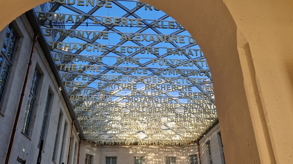 Notre groupe se disperse ensuite pour visiter au rythme et au gré de chacun les 15 salles où sont rassemblés documents, objets de collection, dispositifs numériques, pour retracer « l’aventure du français », langue-monde.