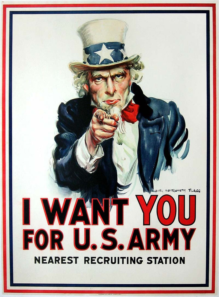 Il y avait une exposition montrant quelques exemples historiques des affiches de la propagande américaine pour aller aider la France