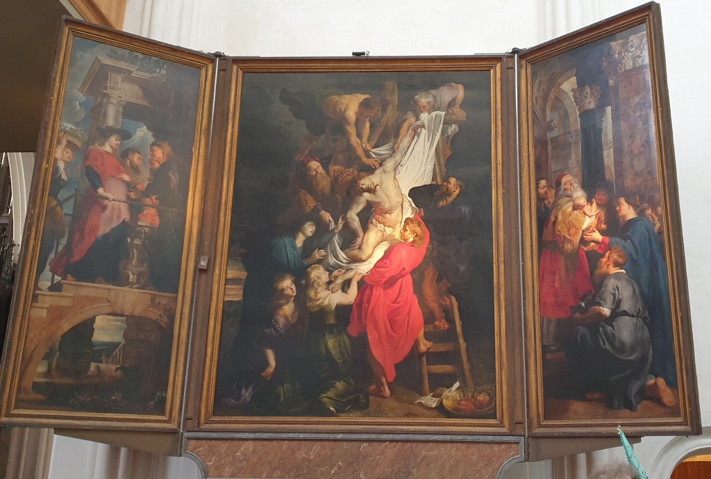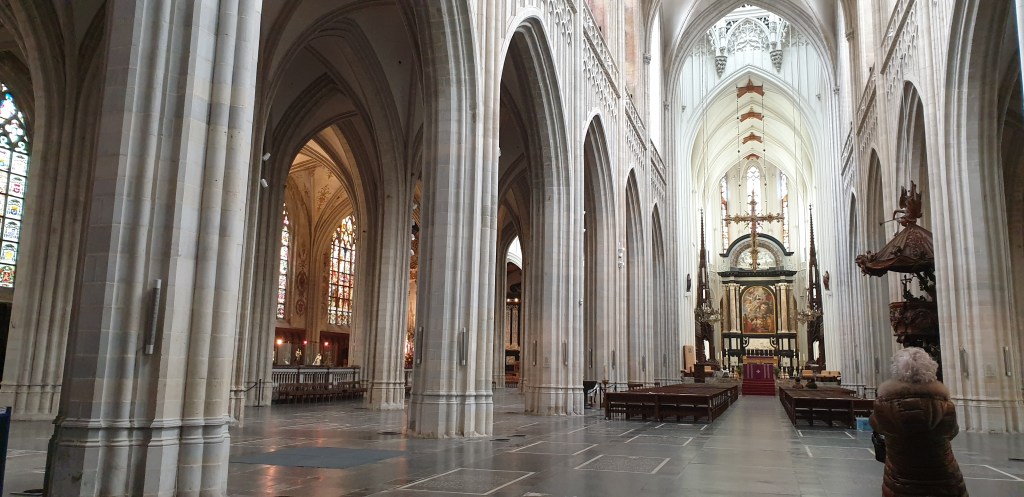 Par un temps maussade, nous découvrîmes l’architecture des maisons et comptoirs des riches marchands et armateur flamands. Avant de pénétrer dans la belle Cathédrale Notre-Dame, où des retables du Rubens nous attendaient.
