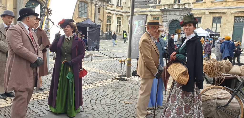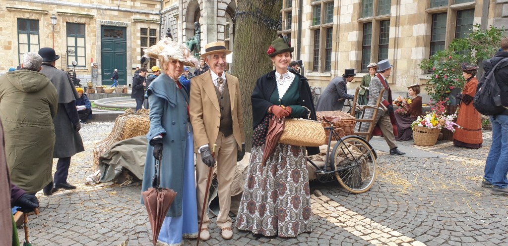 Puis nous nous dirigeâmes vers un agréable restaurant, sur le chemin, nous tombâmes sur le tournage d’un film de la belle époque, élégamment assorti au décors anversois…