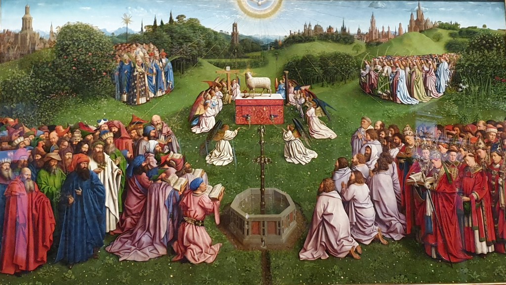 Après la visite de la Cathédrale Saint-Bavon où nous eûmes un long moment pour admirer l’Agneau mystique attribué à Jean Van Eyck, nous déjeunâmes dans une auberge populaire où on nous servit le fameux waterzooi, ensuite, petites flâneries, petits achats de souvenirs chocolatés ou pas. Puis nous remontâmes dans notre minibus qui nous ramena jusqu’à Lille sans difficulté. Nous arrivâmes à Paris après le coucher du soleil, nous nous y retrouvâmes quasi sans taxis, au milieu d’une ville en émeute mais finalement rejoignîmes nos domiciles sans encombre, apercevant le début des échauffourées place de la République et place de la Bastille.