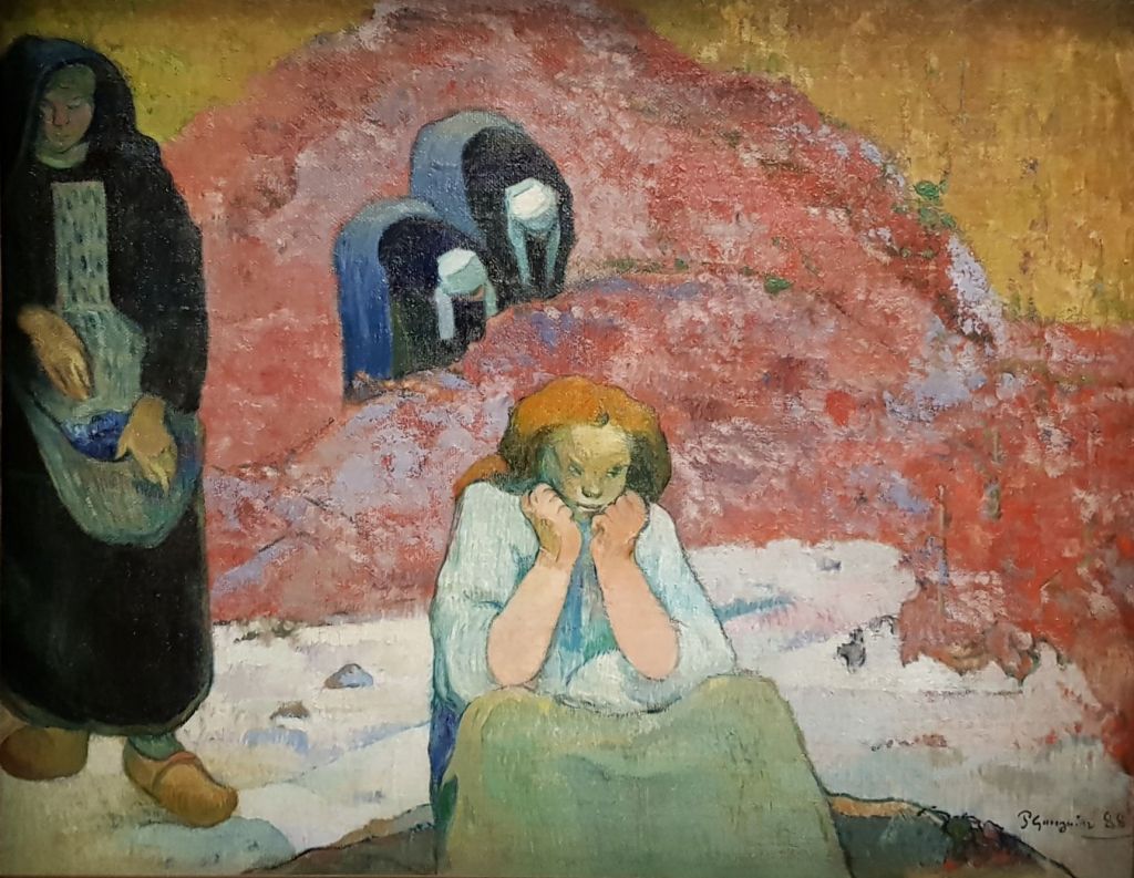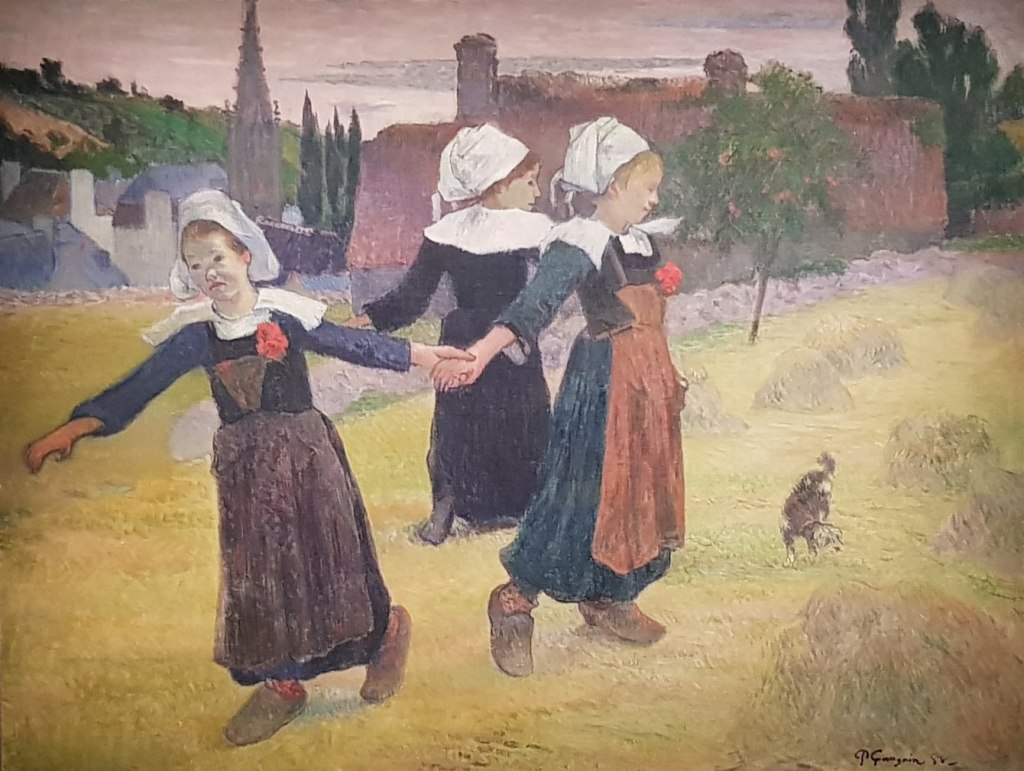 Arrive alors la période bretonne ; Gauguin se rend à Pont Aven où il rencontre des peintres dont Pissarro, Emile Bernard, Paul Sérusier, Puigaudeau, il peint le portrait de la belle Angèle, la plus belle fille de Pont Aven puis se rend ensuite à Arles où il rencontre avec Van Gogh mais cela se termine par une rupture violente.