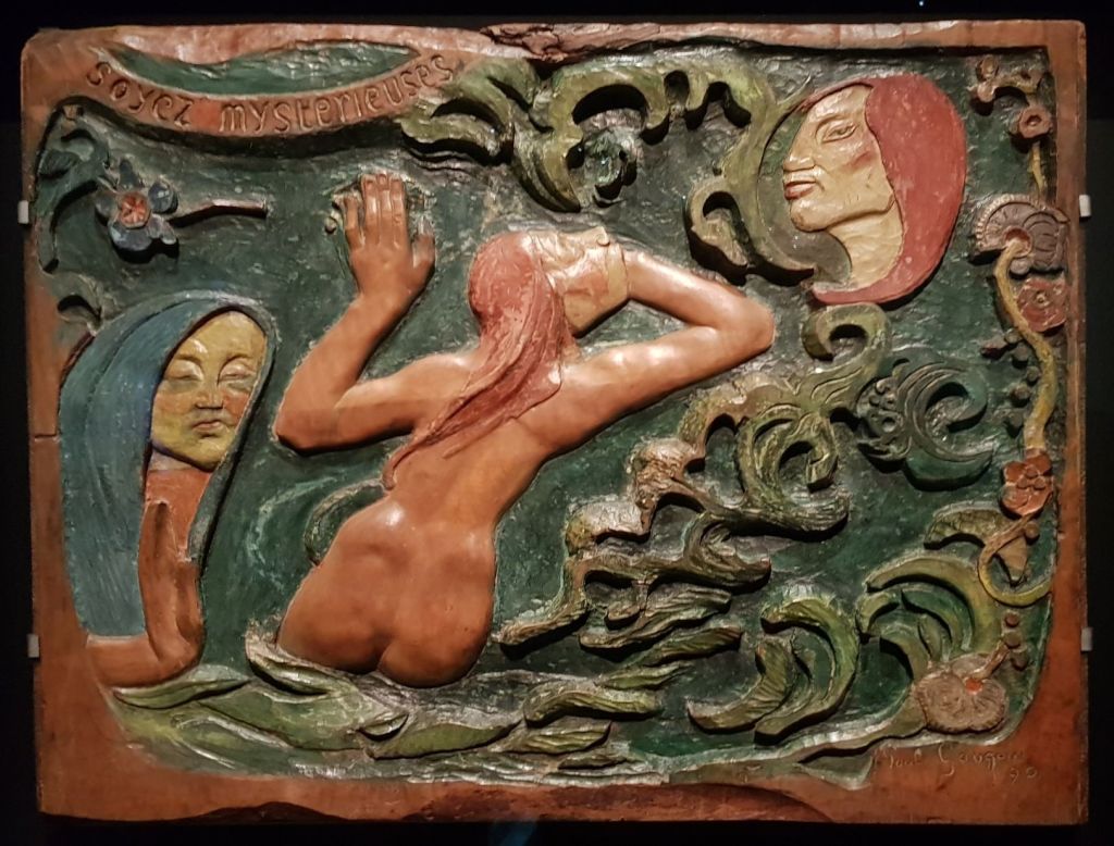 Beaucoup de toiles illustrent ces différentes périodes. On découvre que Gauguin sculptait le bois, travaillait la céramique.