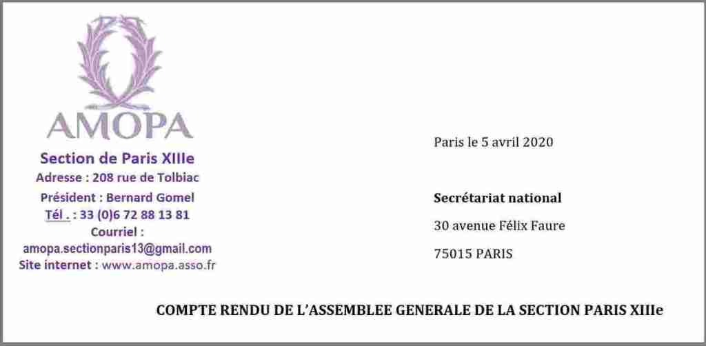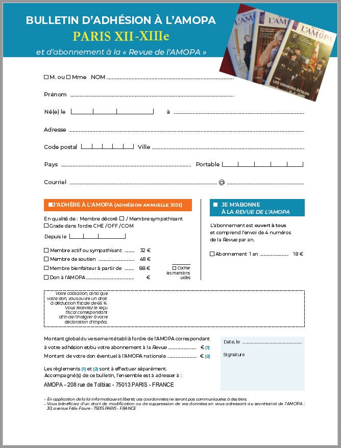 Le Président, le Bureau, le Comité consultatif, les membres, sympathisants et amis du XII-XIII sont heureux de vous présenter leur section AMOPA Paris XII-XIII ici en bleu sur la carte des arrondissements de Paris