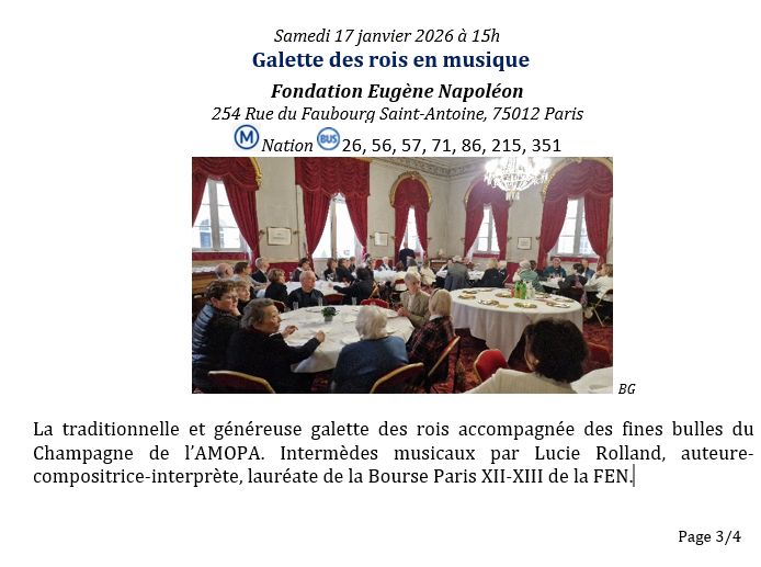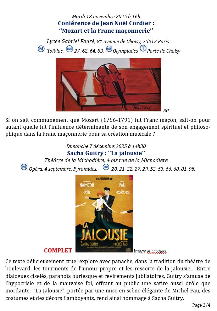 Et en avant première (l’invitation n’est pas encore composée) veuillez noter notre assemblée générale le mardi 17 mars 2026 à 15 h au lycée Gabriel Fauré, elle sera suivie d’une conférence qui sera donnée à 18h
