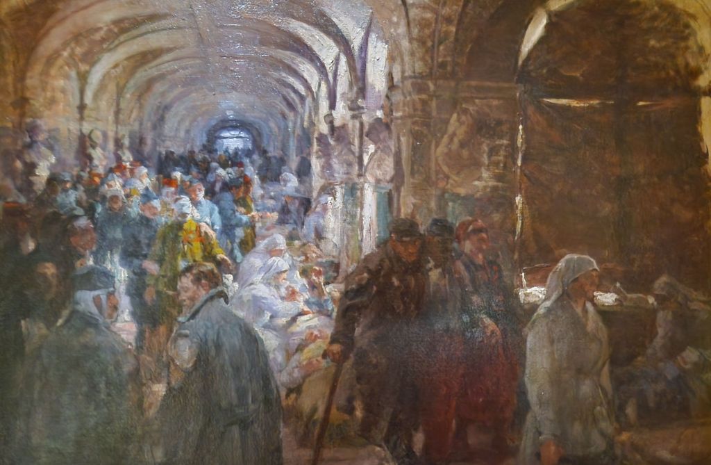 On découvre les méthodes sommaires du début de la médecine militaire, les progrès immenses dus à Dominique-Jean Larrey sous Napoléon 1er, les ravages du développement de l’artillerie, le dénuement de 1914, les notables progrès acquis en 1918 et l’évolution continue jusqu’à nos jours, dont la prise en charge des dégâts psychiques.